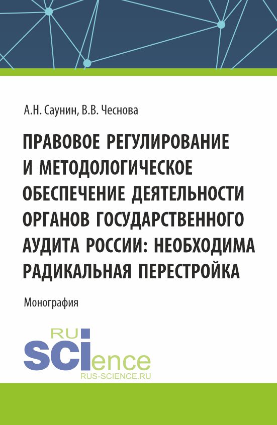 Саунин, А. Н. Правовое регулирование и методологическое обеспечение деятельности органов государственного аудита России: необходима радикальная перестройка : монография / А. Н. Саунин, В. В. Чеснова.