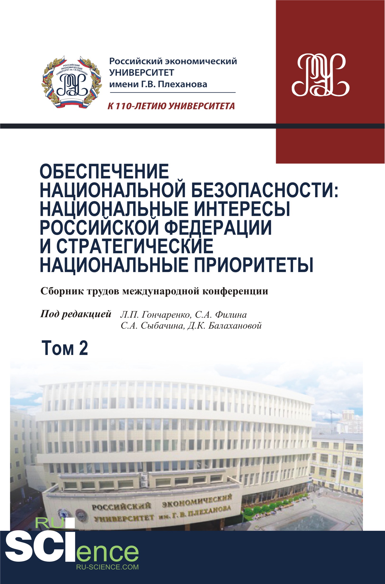 Обеспечение национальной безопасности: национальные интересы Российской Федерации и стратегические национальные приоритеты. Том2 : сборник статей / Л. П. Гончаренко, С. А. Филин, С. А. Сыбачин [и др.] ; под ред. Л. П. Гончаренко, С. А. Филина, С. А. Сыбачина, Д. К. Балахановой.