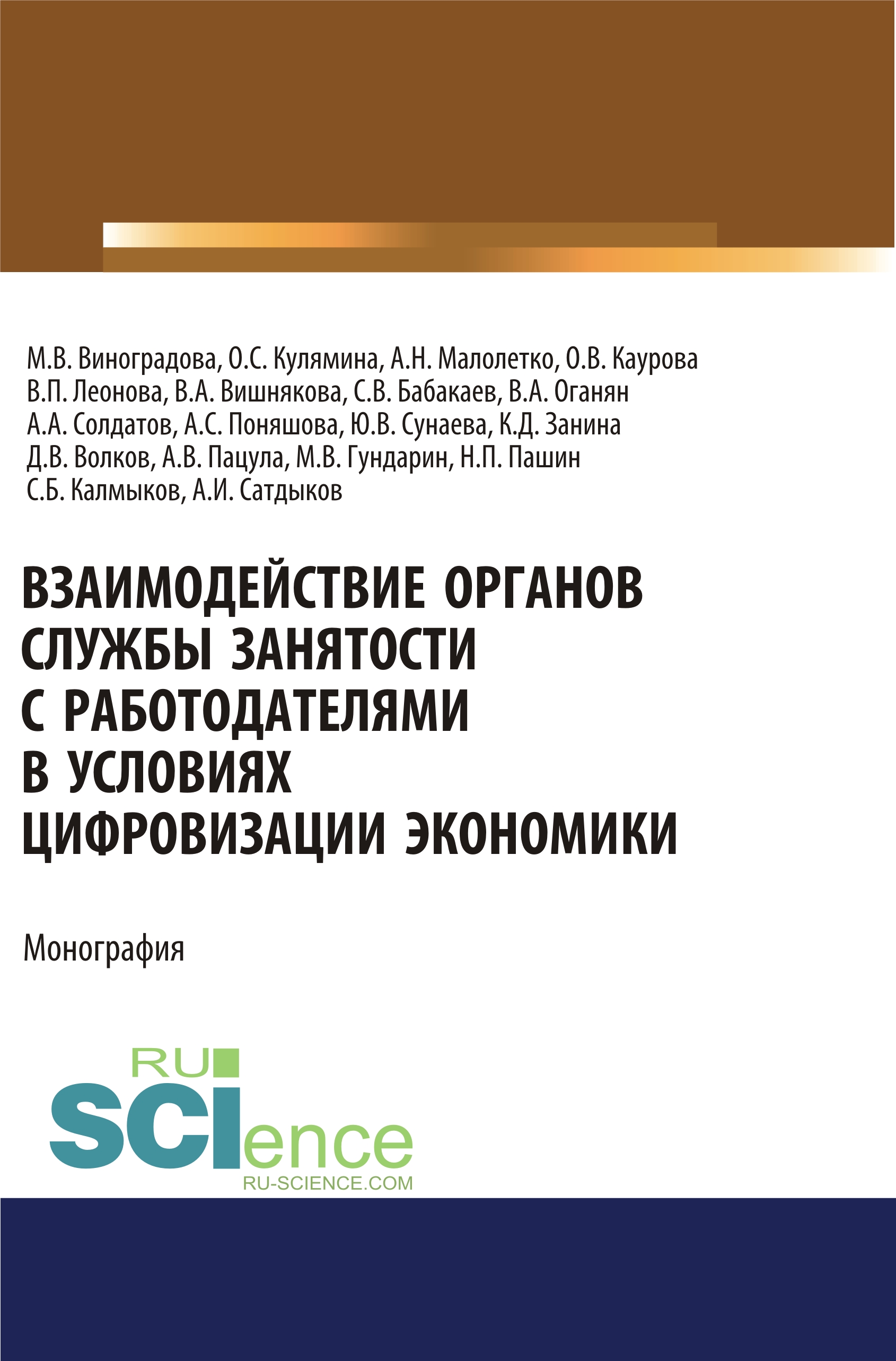 Взаимодействие органов службы занятости с работодателями в условиях цифровизации экономики : монография / С. В. Бабакаев, М. В. Виноградова, В. А. Вишнякова [и др.].
