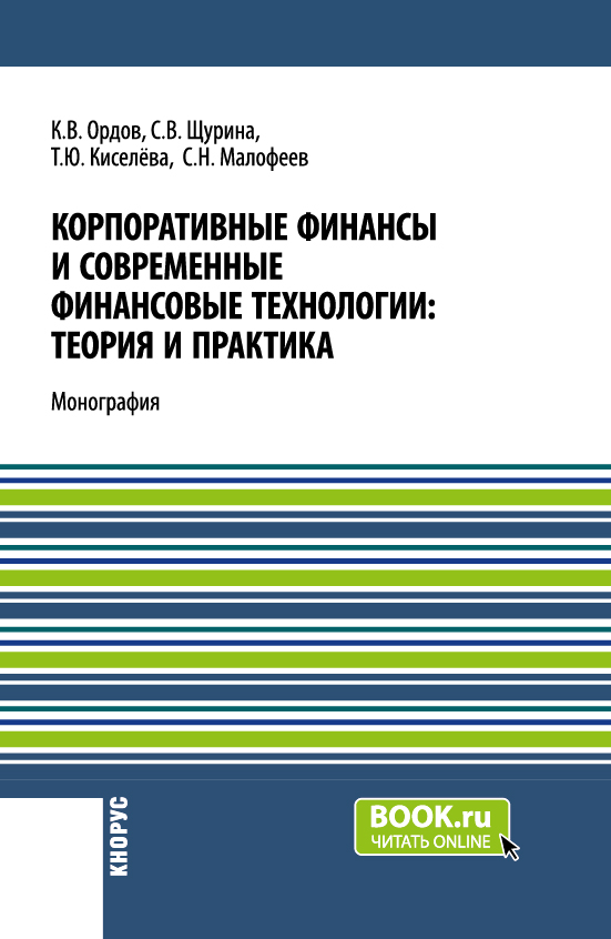 Ордов, К. В. Корпоративные финансы и современные финансовые технологии: теория и практика : монография / К. В. Ордов, С. В. Щурина, С. Н. Малофеев, Т. Ю. Киселева.