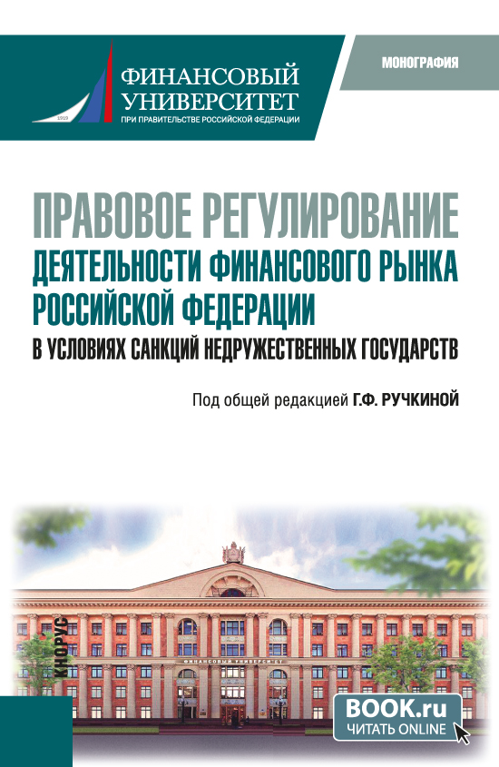 Правовое регулирование деятельности финансового рынка Российской Федерации в условиях санкций недружественных государств. : монография / Г. Ф. Ручкина, С. С. Горохова, Е. Ю. Баракина [и др.] ; под общ. ред. Г. Ф. Ручкиной.