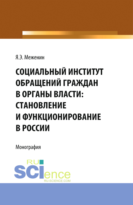 Меженин, Я. Э. Социальный институт обращений граждан в органы власти:Становление и функционирование в России. : монография / Я. Э. Меженин.