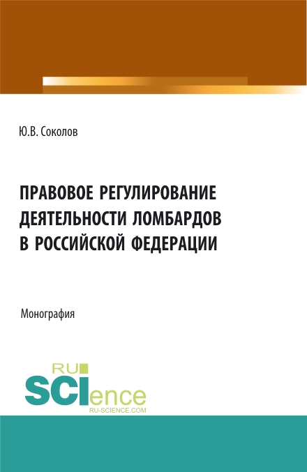 Соколов, Ю. В. Правовое регулирование деятельности ломбардов в Российской Федерации : монография / Ю. В. Соколов.