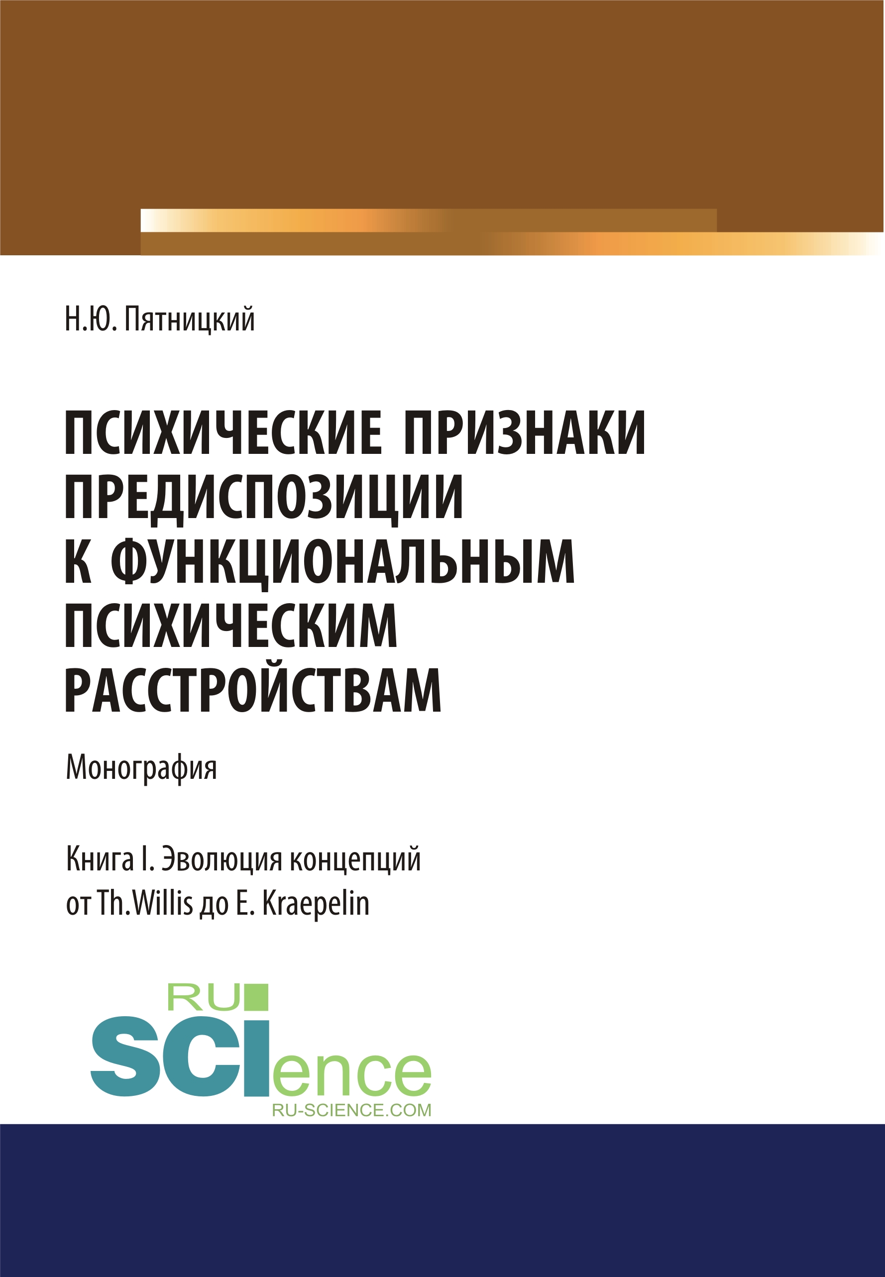 Пятницкий, Н. Ю. Психические признаки предиспозиции к функциональным психическим расстройствам. Книга I. Эволюция концепций от Th. Willis до E. Kraepelin : монография / Н. Ю. Пятницкий.