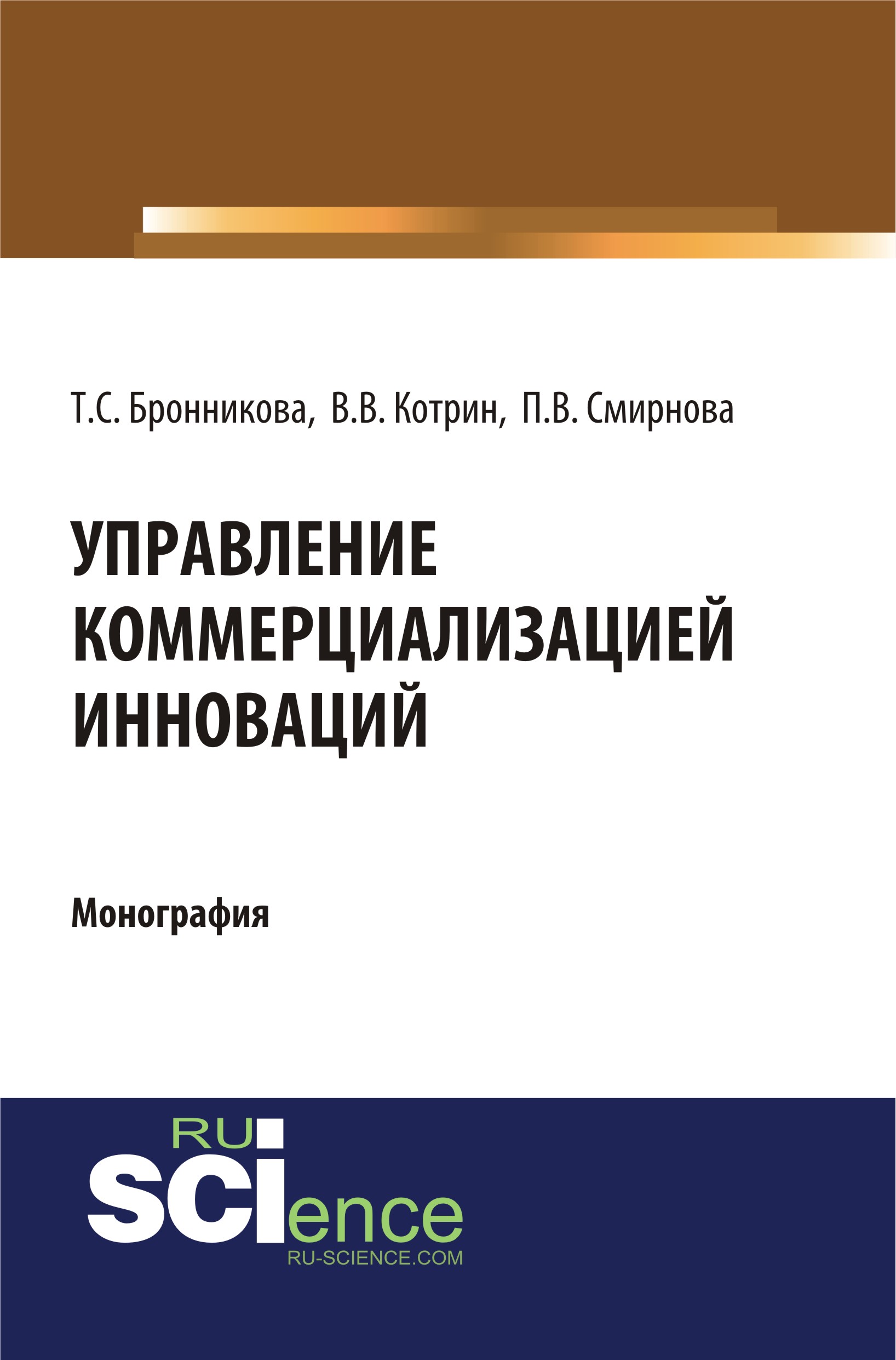Бронникова, Т. С., Управление коммерциализацией инноваций : монография / Т. С. Бронникова, В. В. Котрин, П. В. Смирнова.