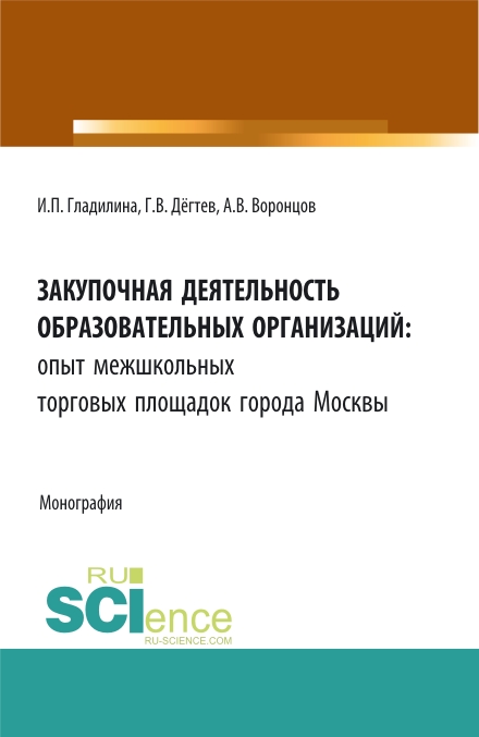Гладилина, И. П., Закупочная деятельность образовательных организаций: опыт межшкольных торговых площадок города Москвы : монография / И. П. Гладилина, Г. В. Дёгтев, А. В. Воронцов.