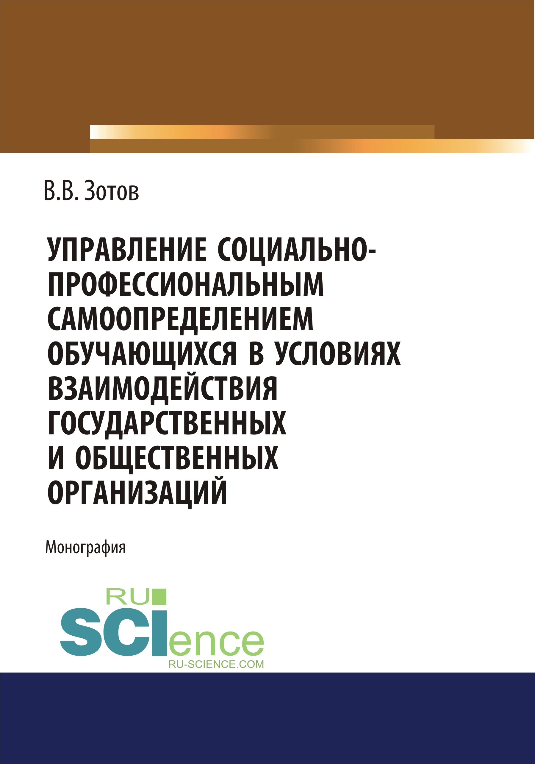 Зотов, В. В. Управление социально-профессиональным самоопределением обучающихся в условиях взаимодействия государственных и общественных организаций : монография / В. В. Зотов.