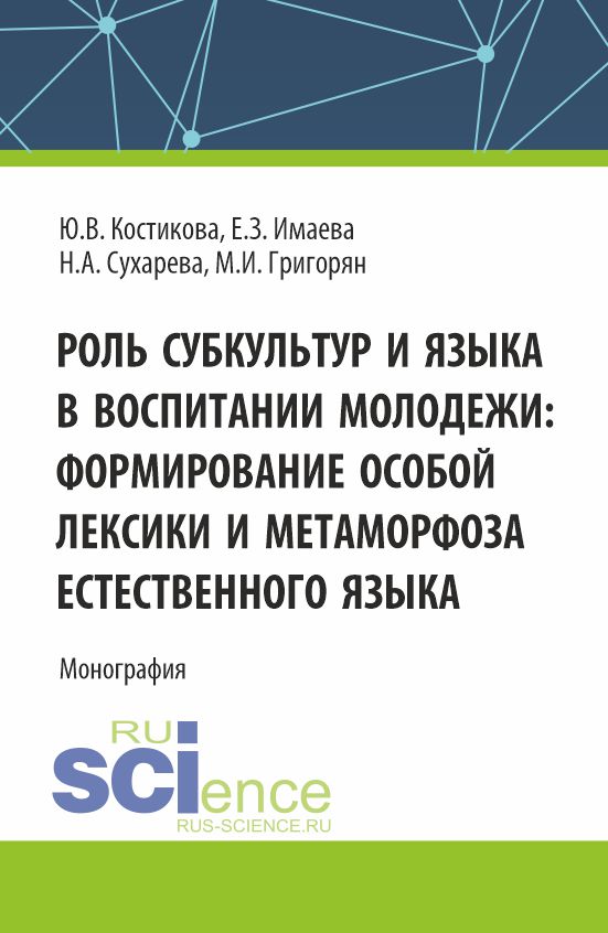 Костикова, Ю. В., Роль субкультур и языка в воспитании молодежи : формирование особой лексики и метаморфоза естественного языка : монография / Ю. В. Костикова, Е. З. Имаева, Н. А. Сухарева, М. И. Григорян.