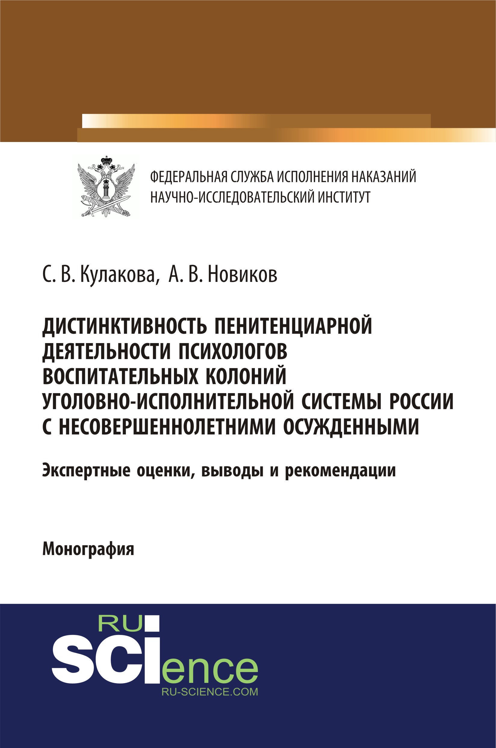 Кулакова, С. В. Дистинктивность пенитенциарной деятельности психологов воспитательных колоний уголовно-исполнительной системы России с несовершеннолетними осужденными : монография / С. В. Кулакова, А. В. Новиков.
