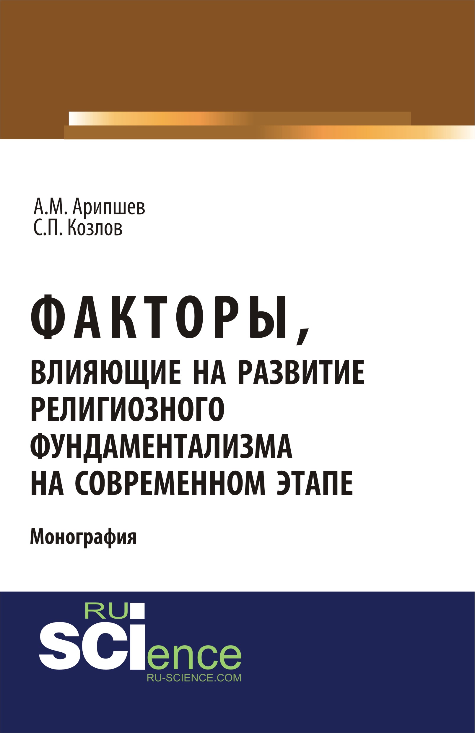 Арипшев, А. М. Факторы, влияющие на развитие религиозного фундаментализма на современном этапе : монография / А. М. Арипшев, С. П. Козлов.