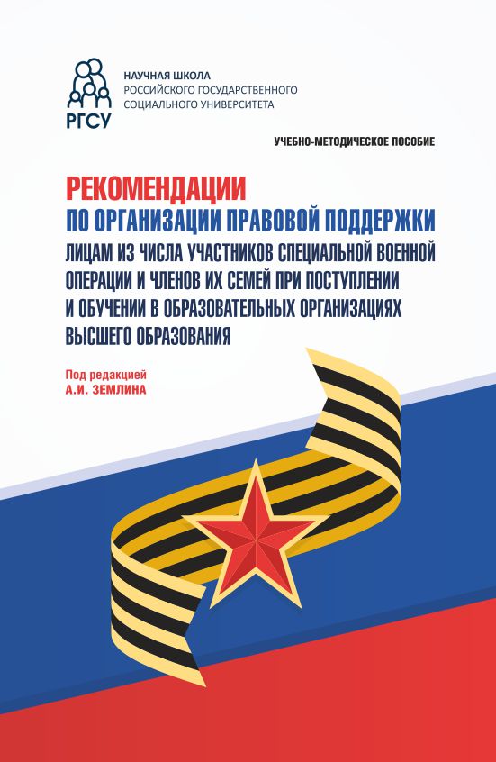 Рекомендации по организации правовой поддержки лицам из числа участников специальной военной операции и членов их семей при поступлении и обучении в образовательных организациях высшего образования : учебно-методическое пособие / А. И. Землин, Е. Ю. Казакова, Д. Ю. Левшиц [и др.] ; под ред. А. И. Землина.