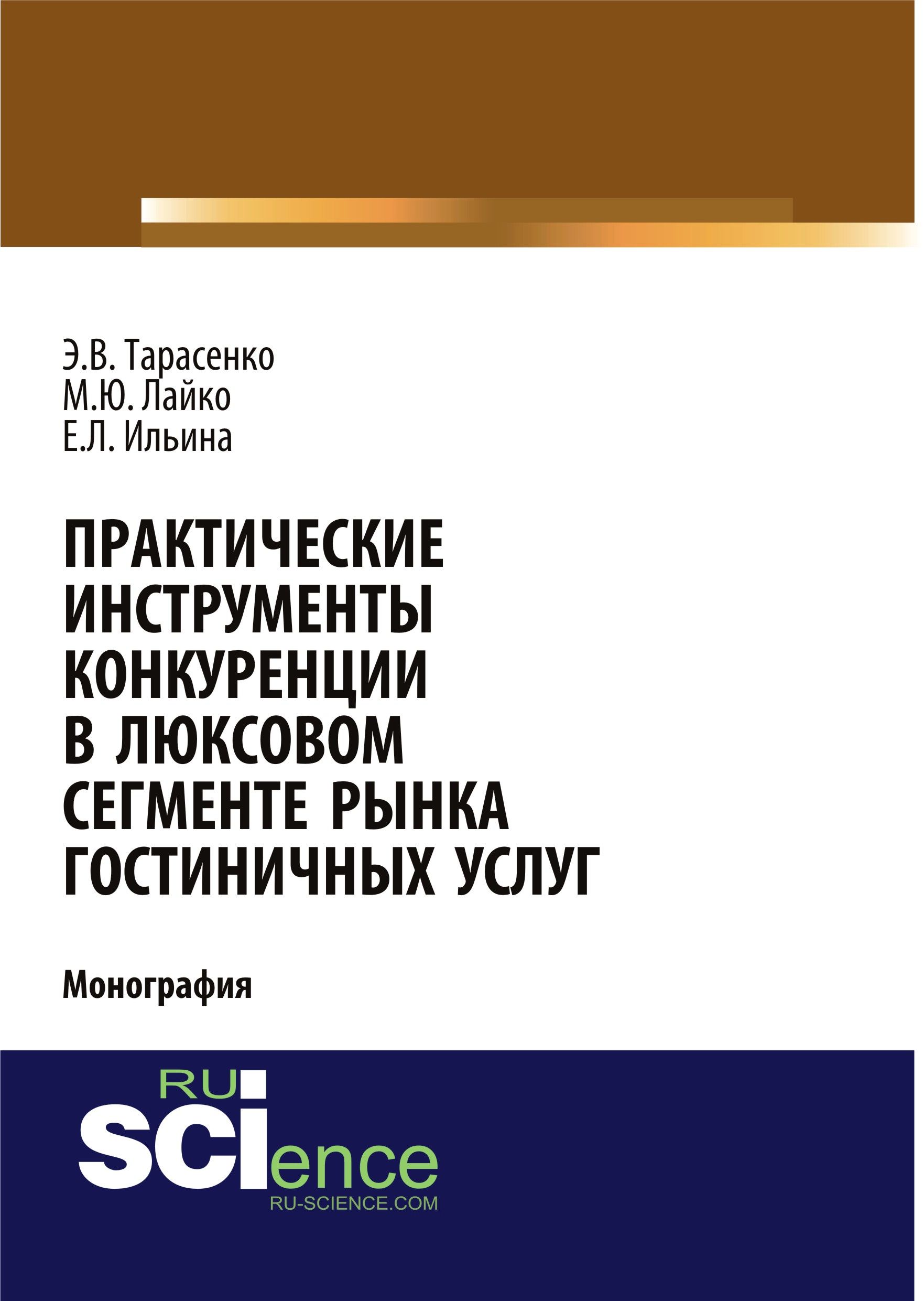 Тарасенко, Э. В. Практические инструменты конкуренции в люксовом сегменте рынка гостиничных услуг : монография / Э. В. Тарасенко, М. Ю. Лайко, Е. Л. Ильина.