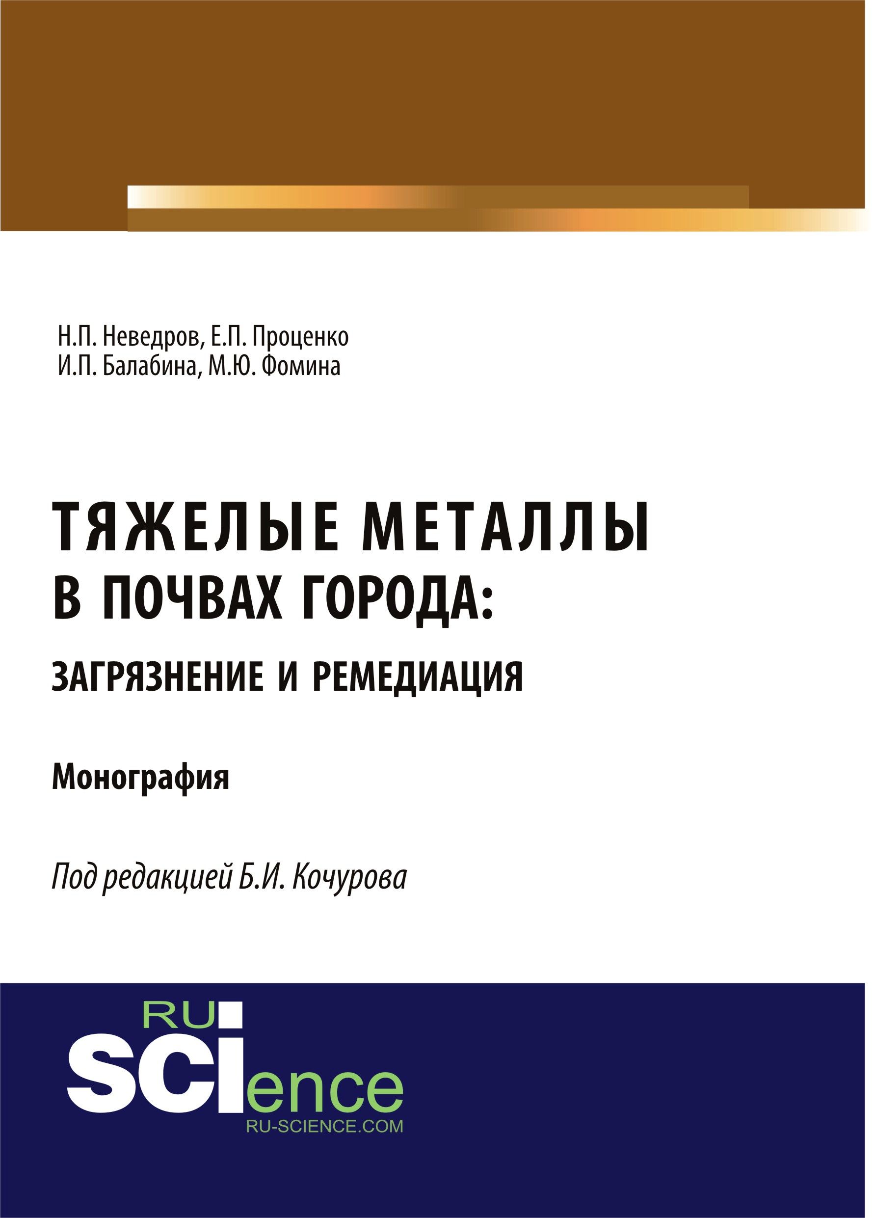 Тяжелые металлы в почвах города: загрязнение и ремедиация : монография / Б. И. Кочуров, Н. П. Неведров, Е. П. Проценко [и др.] ; под ред. Б. И. Кочурова.