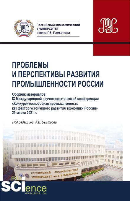 Проблемы и перспективы развития промышленности России: сборник материалов IX Международной научно-практической конференции «Конкурентоспособная промышленность как фактор устойчивого развития экономики России»; ФГБОУ ВО «РЭУ им. Г.В. Плеханова», 29 марта 2021 г.: сборник материалов / кол.авторов; под ред. А.В. Быстрова. — Москва: РУСАЙНС, 2021. — 402 с.