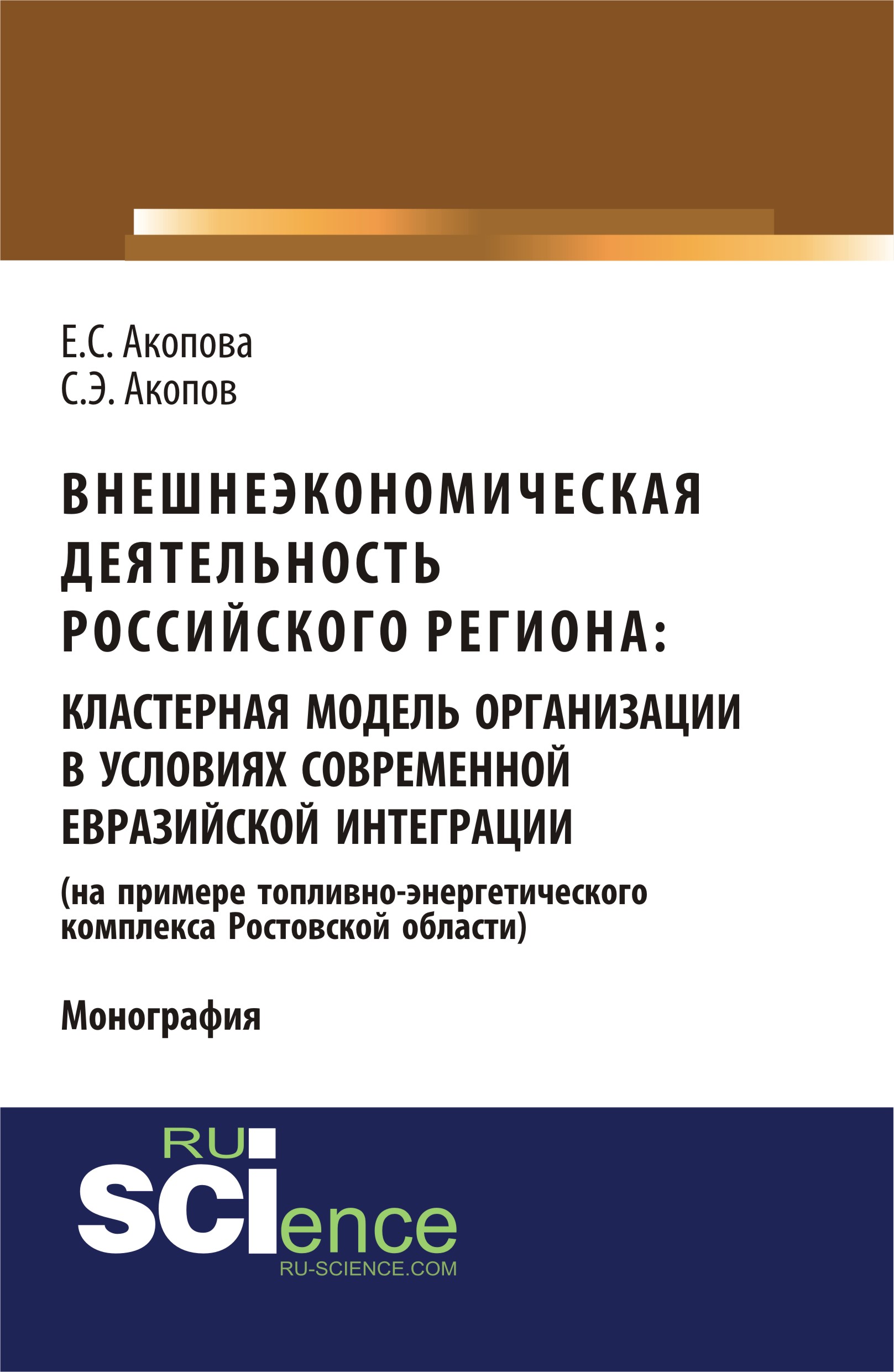Акопов, С. Э. Внешнеэкономическая деятельность российского региона: кластерная модель организации в условиях современной евразийской интеграции (на примере топливно-энергетического комплекса Ростовской области) : монография / С. Э. Акопов, Е. С. Акопова.
