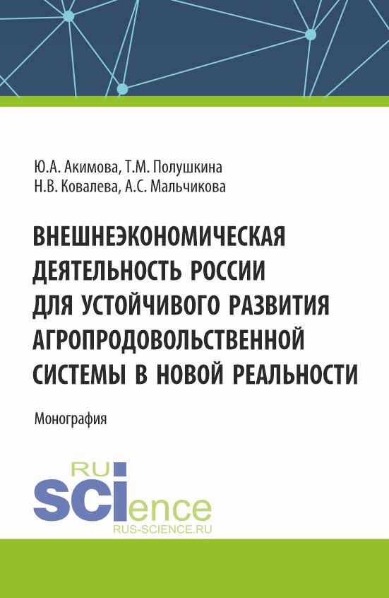 Акимова, Ю. А. Внешнеэкономическая деятельность России для устойчивого развития агропродовольственной системы в новой реальности : монография / Ю. А. Акимова, Т. М. Полушкина, А. С. Мальчикова, Н. В. Ковалева.
