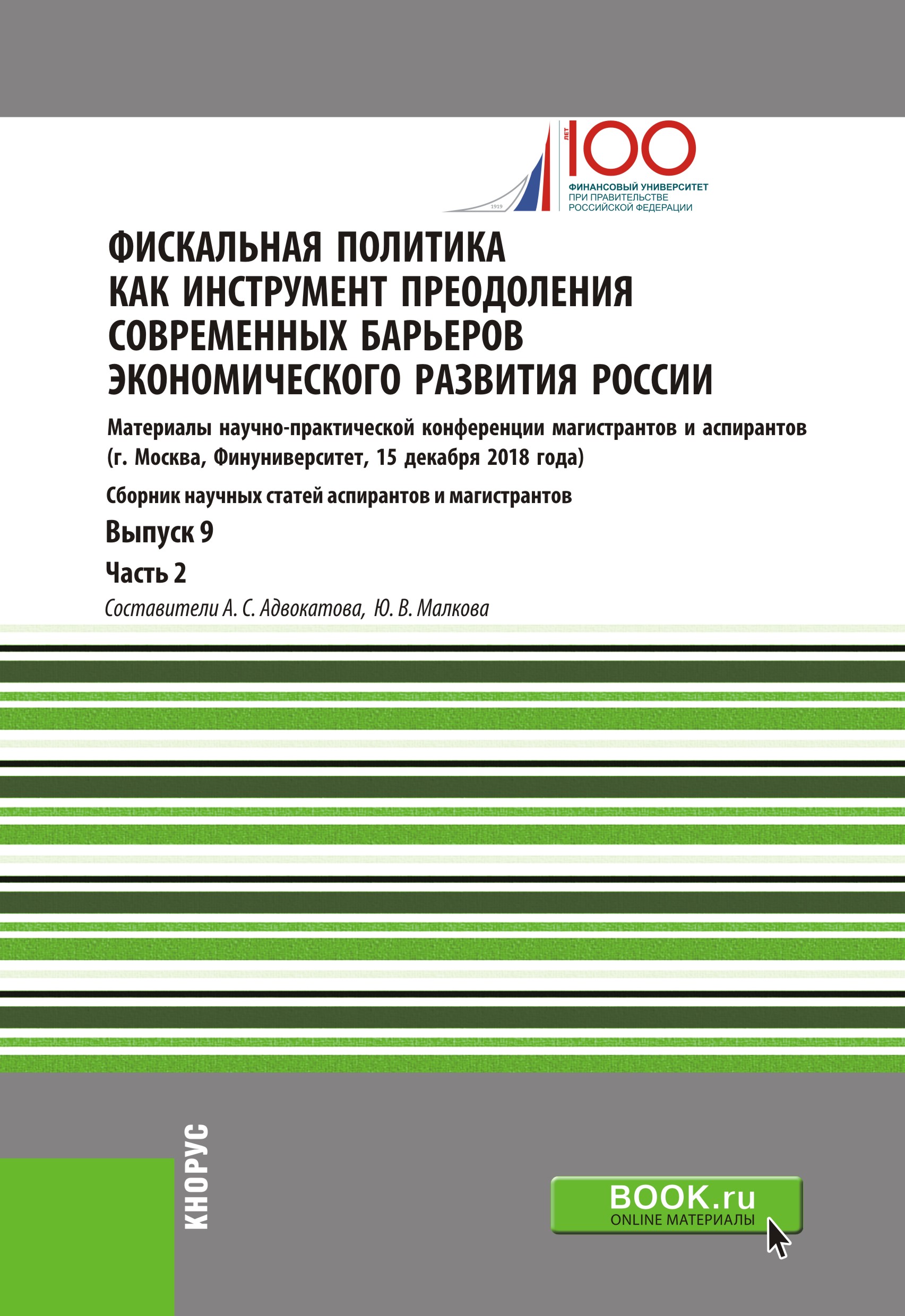 Фискальная политика как инструмент преодоления современных барьеров экономического развития России. Материалы научно-практической конференции магистрантов и аспирантов. Выпуск 9. Часть 2 : сборник статей / ; под ред. А. С. Адвокатовой, Коллектив авторов.