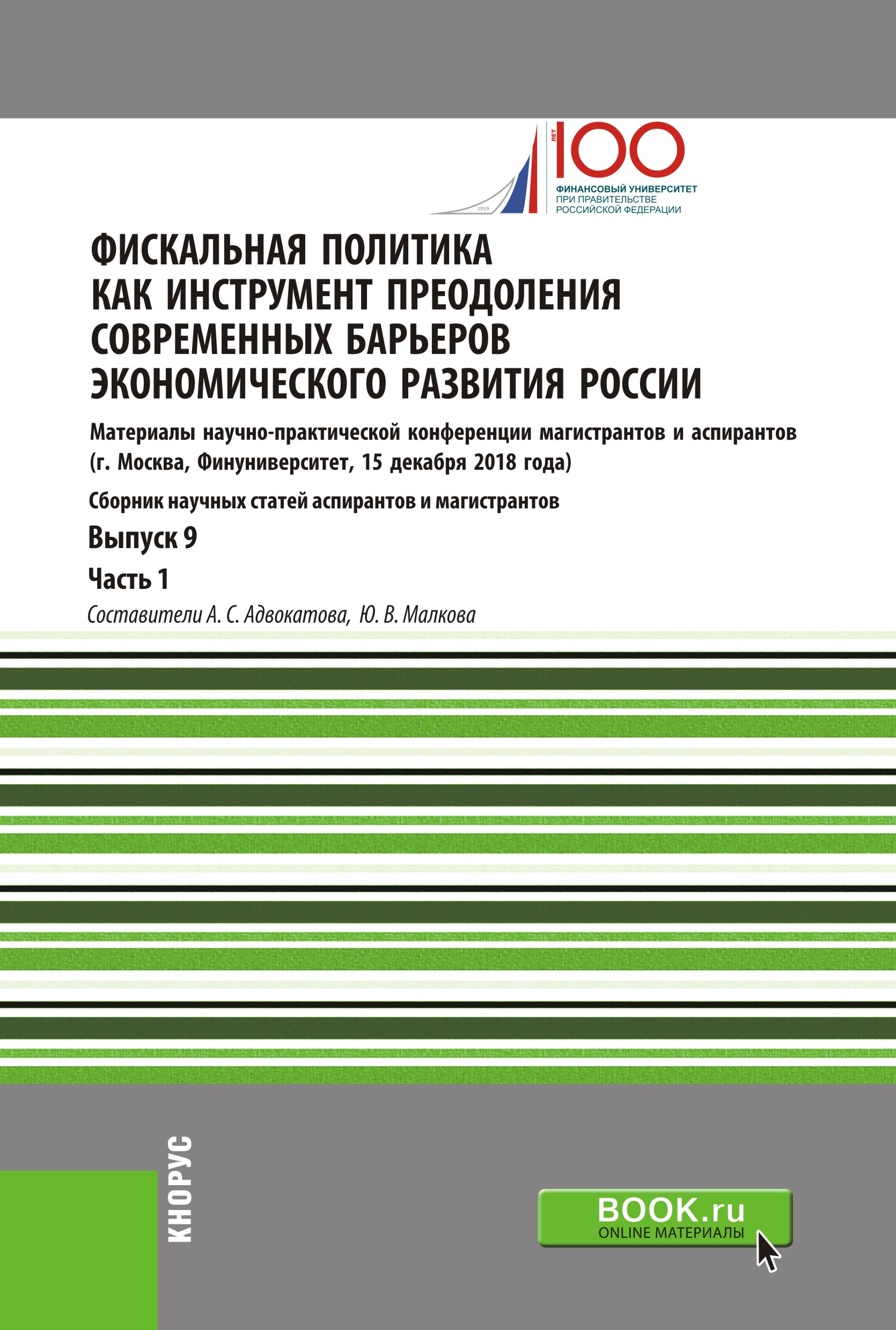 Фискальная политика как инструмент преодоления современных барьеров экономического развития России. Материалы научно-практической конференции магистрантов и аспирантов. Выпуск 9. Часть 1 : сборник статей / ; под ред. А. С. Адвокатовой, Коллектив авторов.