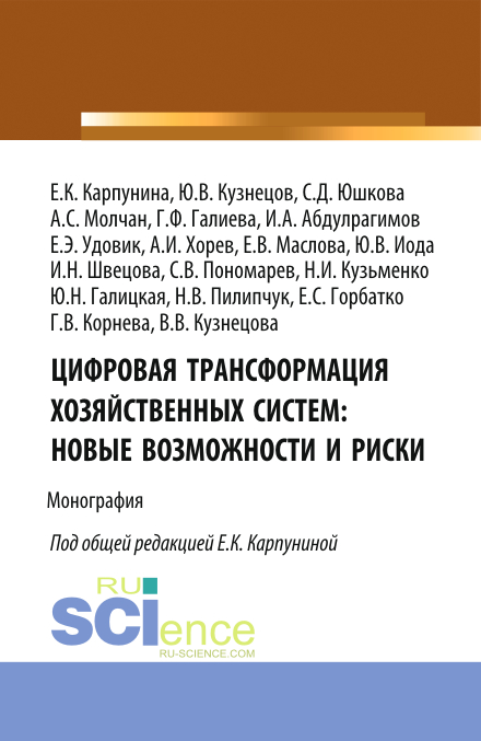 Карпунина, Е. К., Цифровая трансформация хозяйственных систем: новые возможности и риски : монография / Е. К. Карпунина, ; под общ. ред. Е. К. Карпуниной, Коллектив авторов.