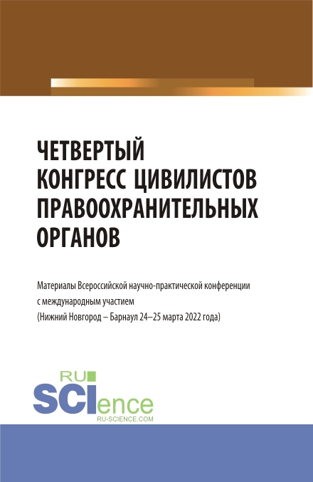 В сборник вошли тезисы докладов Всероссийской научно-практической конференции «Четвертый конгресс цивилистов правоохранительных органов», проходившей 24-25 марта 2022 года на базе Нижегородской академии МВД России, Приволжского филиала Российского государственного университета правосудия, Барнаульского юридического института МВД России и Алтайского филиала Российской академии государственной службы и народного хозяйства при Президенте РФ в режиме онлайн.