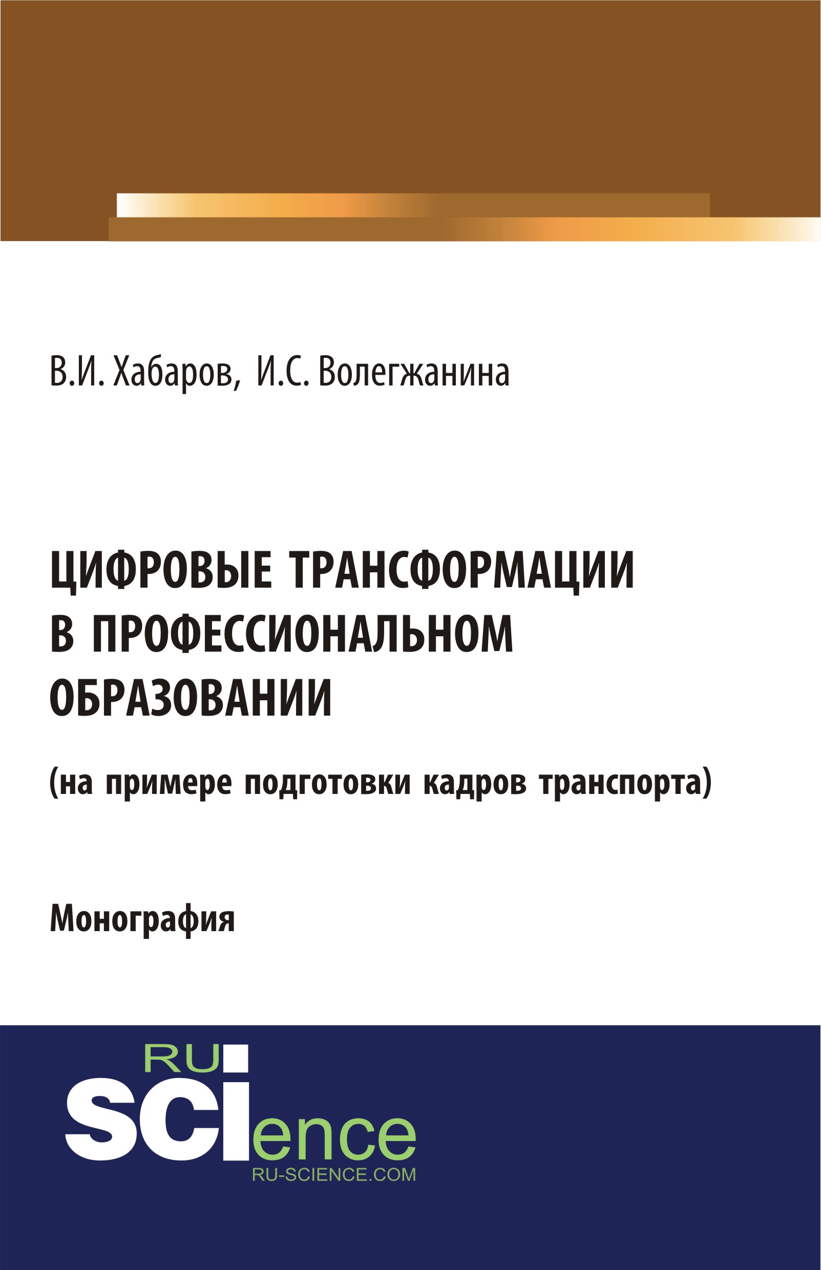 Хабаров, В. И., Цифровые трансформации в профессиональном образовании (на примере подготовки кадров транспорта) : монография / В. И. Хабаров, И. С. Волегжанина.