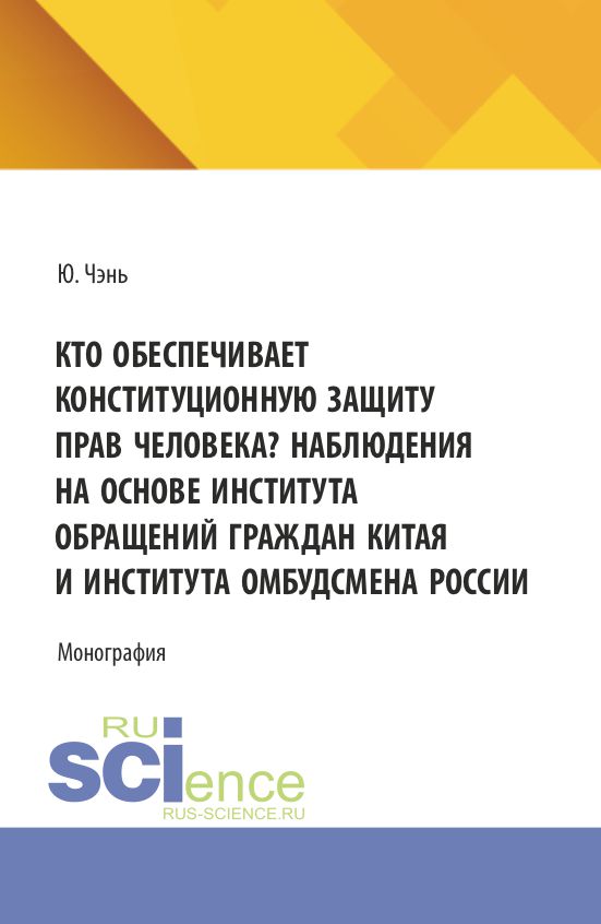 Чэнь, Юйси , Кто обеспечивает конституционную защиту прав человека? Наблюдения на основе института обращений граждан Китая и института омбудсмена России : монография / Юйси Чэнь.