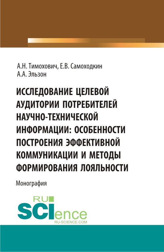 Тимохович, А. Н. Исследование целевой аудитории потребителей научно-технической информации: особенности построения эффективной коммуникации и методы формирования лояльности : монография / А. Н. Тимохович, Е. В. Самоходкин, А. А. Эльзон.