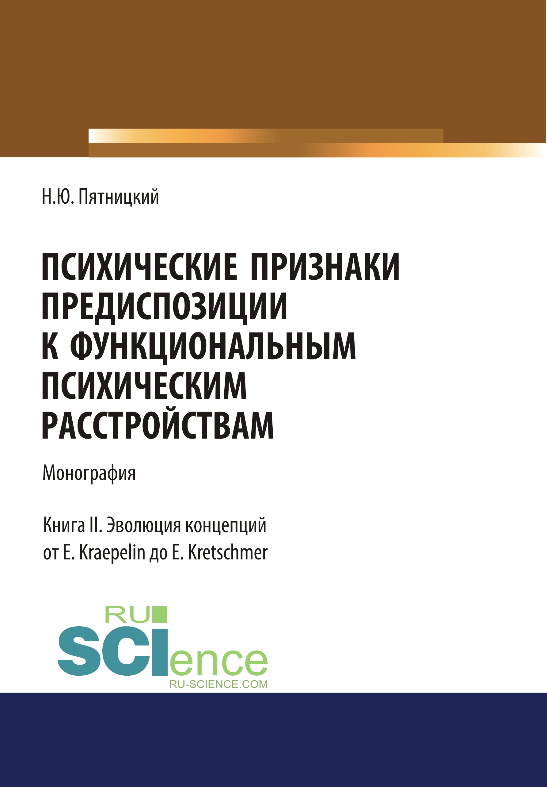 Пятницкий, Н. Ю. Психические признаки предиспозиции к функциональным психическим расстройствам. Книга II. Эволюция концепций от E. Kraepelin до E. Kretschmer : монография / Н. Ю. Пятницкий.