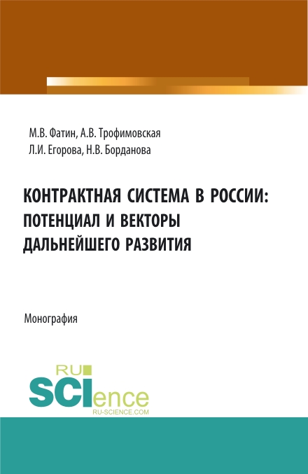Фатин, М. В. Контрактная система в России: потенциал и векторы дальнейшего развития : монография / М. В. Фатин, А. В. Трофимовская, Л. И. Егорова, Н. В. Борданова.