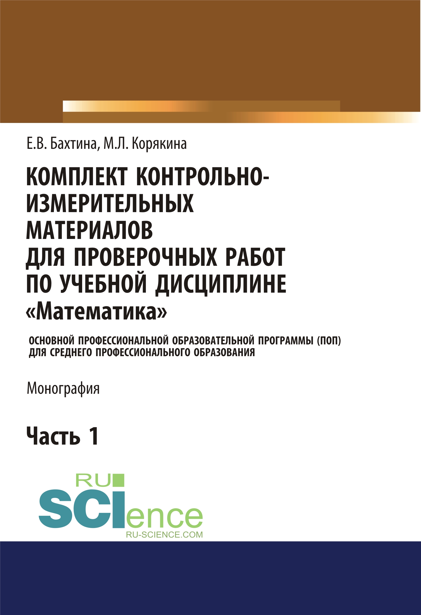 Бахтина, Е. В. Комплект контрольно-измерительных материалов для проверочных работ по учебной дисциплине "Математика" : монография / Е. В. Бахтина, М. Л. Корякина, Н. Н. Шулятьева, И. И. Киселева.