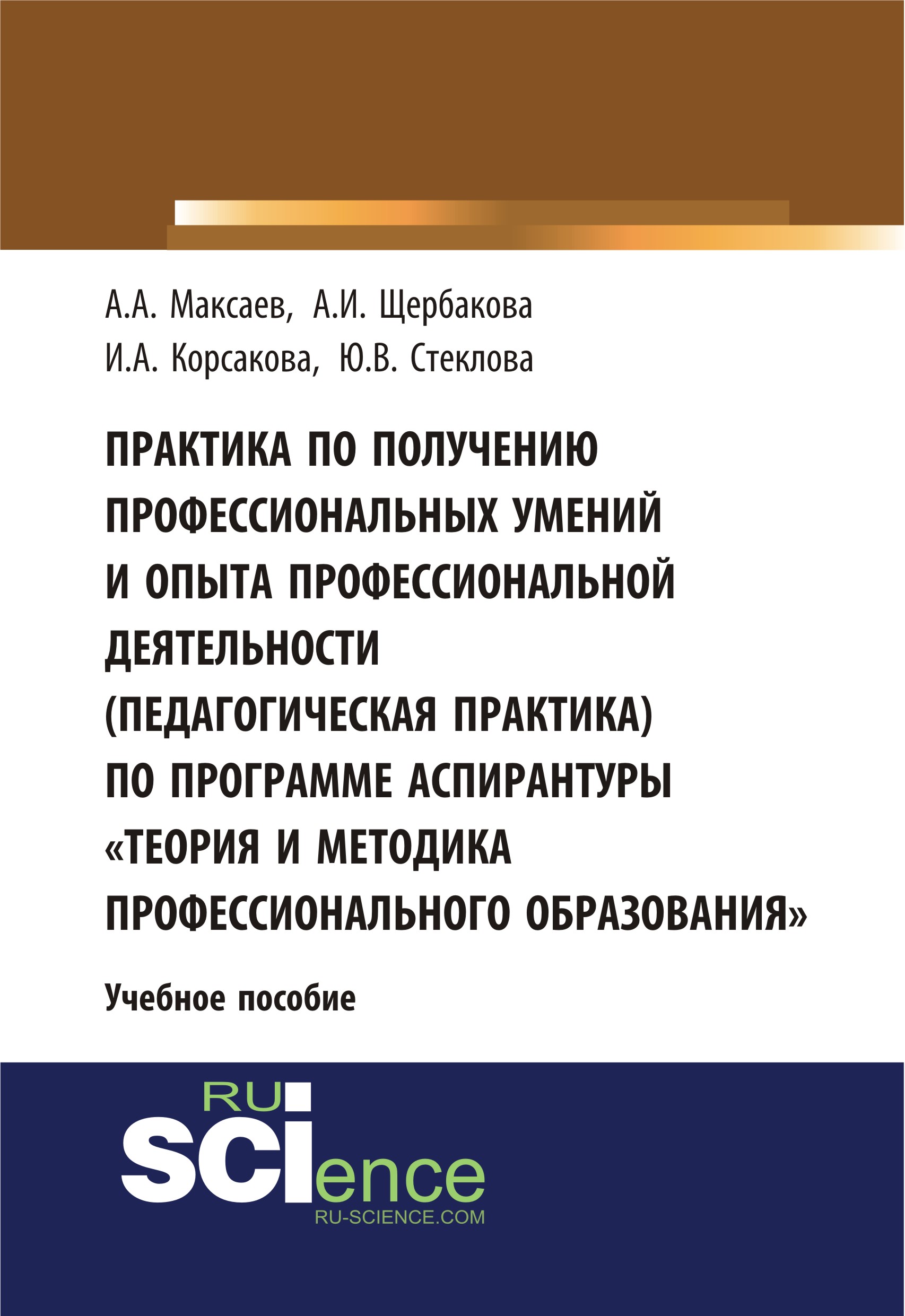 Максаев, А. А. Практика по получению профессиональных умений и опыта профессиональной деятельности (педагогическая практика) по программе аспирантуры «Теория и методика профессионального образования» : учебное пособие / А. А. Максаев, И. А. Корсакова, А. И. Щербакова, Ю. В. Стеклова.