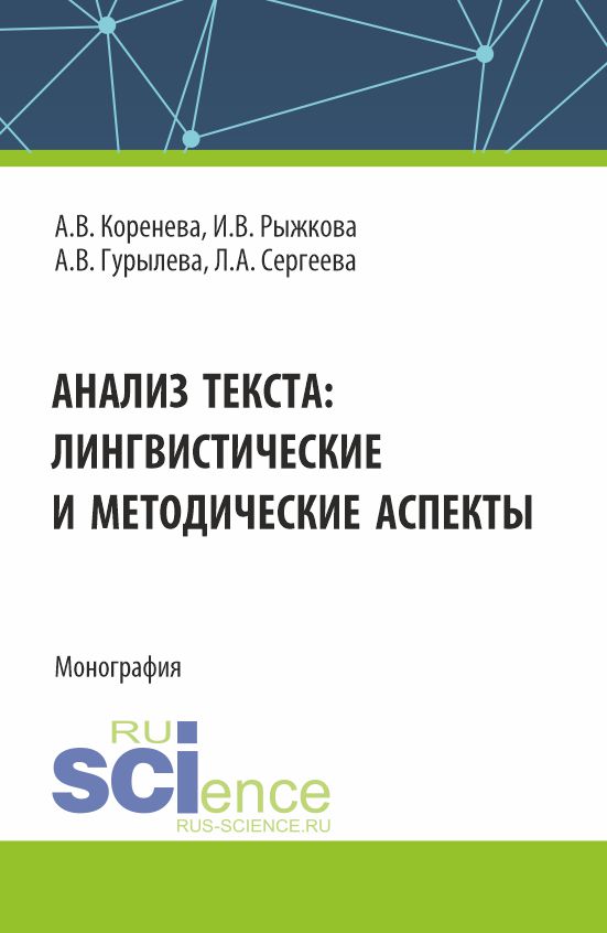 Коренева, А. В. Анализ текста: лингвистические и методические аспекты : монография / А. В. Коренева, И. В. Рыжкова, А. В. Гурылева, Л. А. Сергеева.