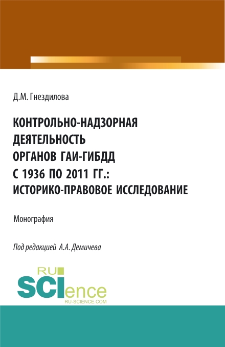 Демичев, А. А. Контрольно-надзорная деятельность органов ГАИ-ГИБДД с 1936 по 2011 гг.: историко-правовое исследование : монография / А. А. Демичев, Д. М. Гнездилова, ; под ред. А. А. Демичева.