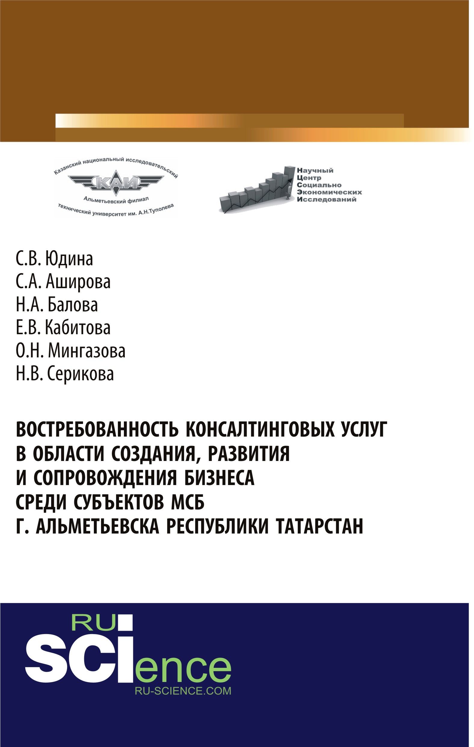 Востребованность консалтинговых услуг в области создания, развития и сопровождения бизнеса среди субъектов МСБ г. Альметьевска Республики Татарстан : монография / С. В. Юдина, С. А. Аширова, Н. А. Балова [и др.].