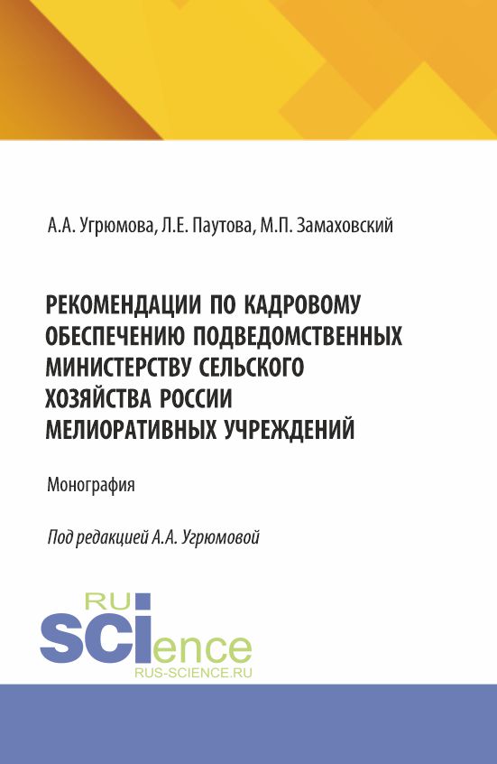 Замаховский, М. П., Рекомендации по кадровому обеспечению подведомственных Министерству сельского хозяйства России мелиоративных учреждений : монография / М. П. Замаховский, Л. Е. Паутова, А. А. Угрюмова, ; под ред. А. А. Угрюмовой.
