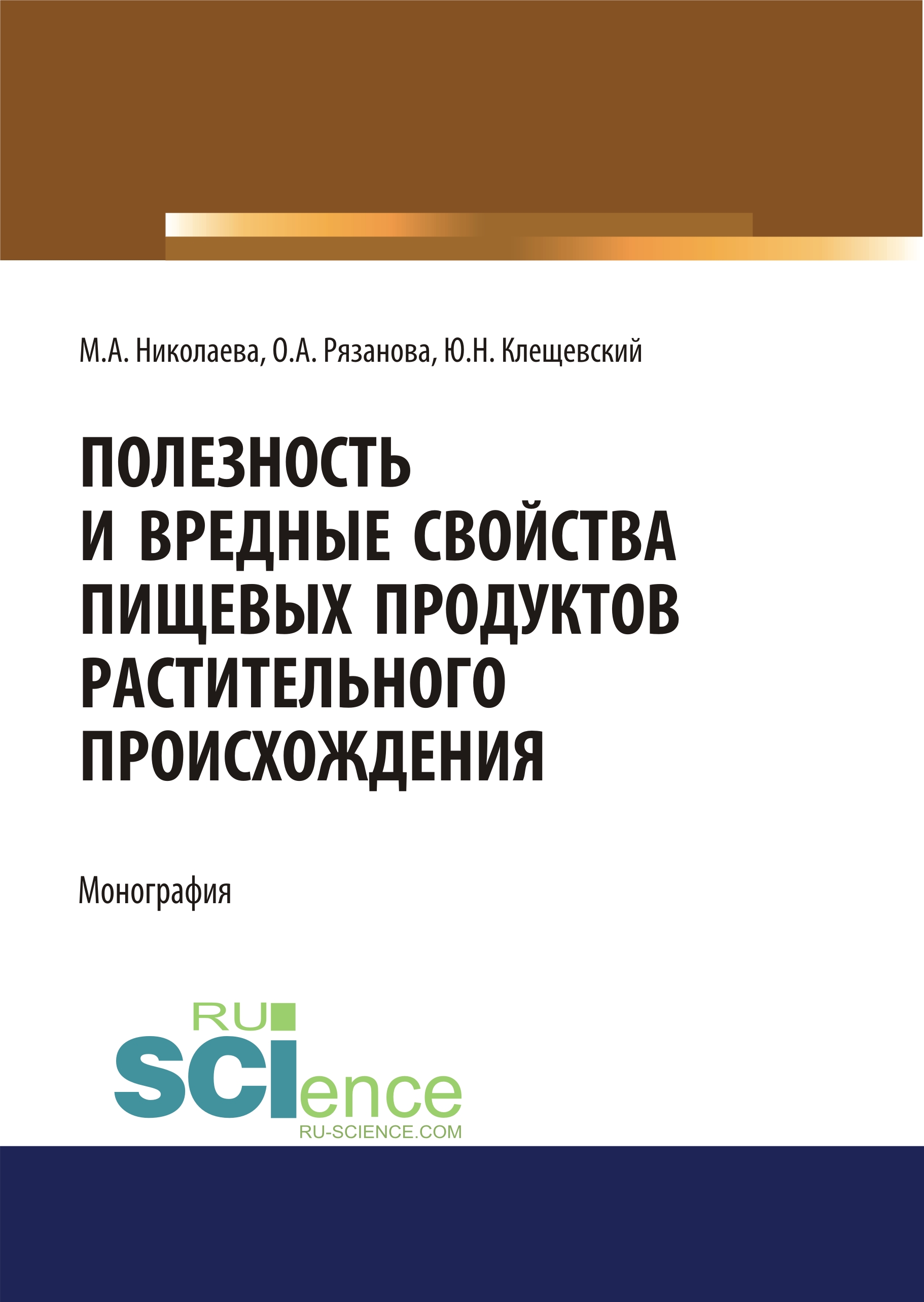 Николаева, М. А. Полезность и вредные свойства продуктов растительного происхождения : монография / М. А. Николаева, О. А. Рязанова, Ю. Н. Клещевский.