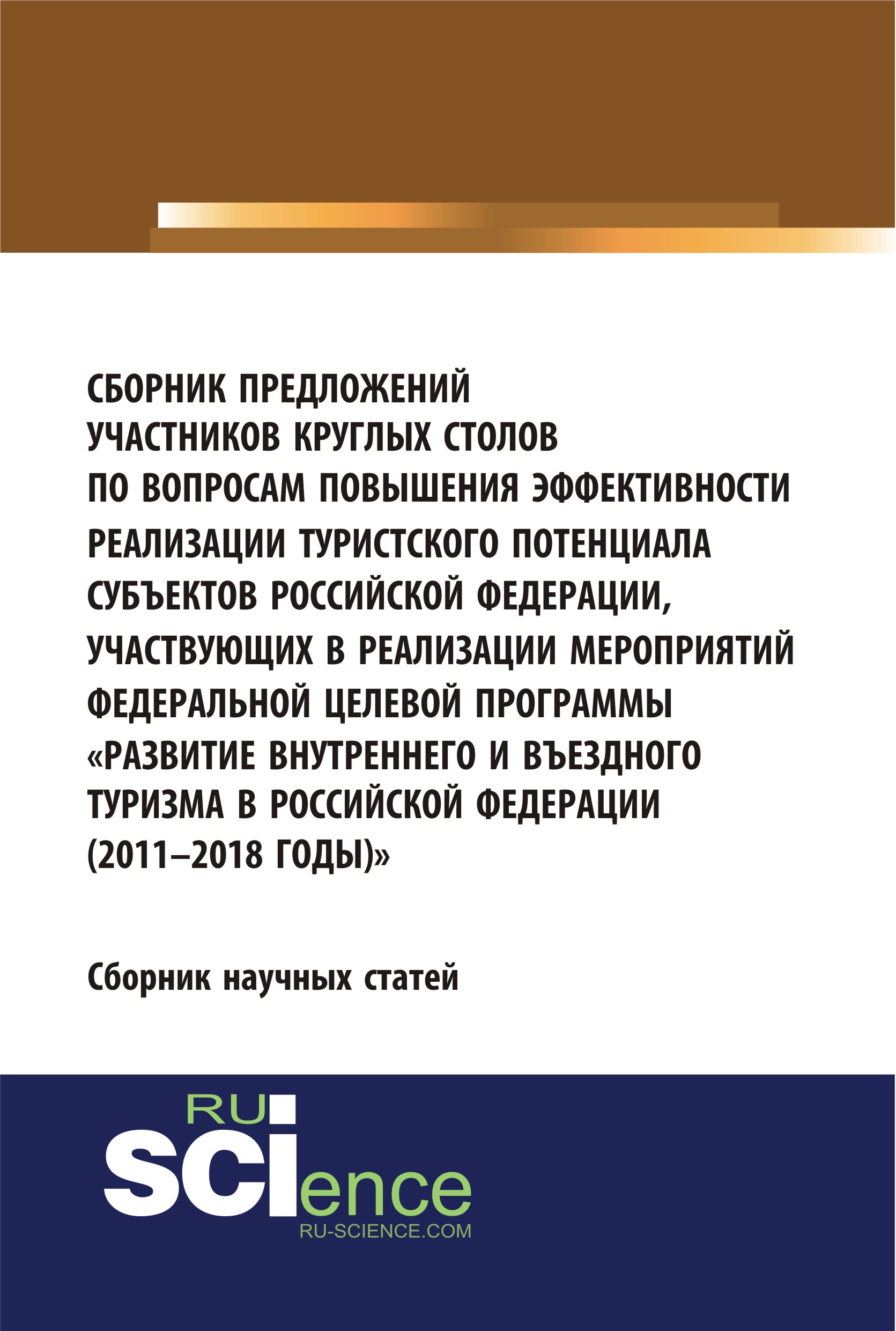 Сборник научных статей по результатам проведения круглых столов по вопросам повышения эффективности реализации туристского потенциала субъектов Российской Федерации, участвующих в реализации мероприятий федеральной целевой программы «Развитие внутреннего и въездного туризма в Российской Федерации (2011-2018 годы)», проведенных по заказу Федерального агентства по туризму, на различные темы развития туризма, инвестиций в создание инфраструктуры.