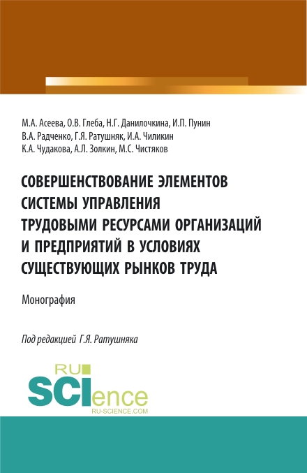 Совершенствование элементов системы управления трудовыми ресурсами организаций и предприятий в условиях существующих рынков труда : монография / М. А. Асеева, О. В. Глеба, Н. Г. Данилочкина [и др.].