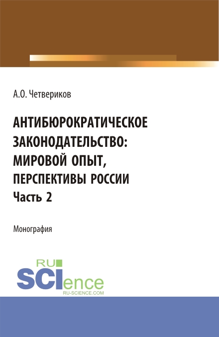 Четвериков, А. О. Антибюрократическое законодательство: мировой опыт, перспективы России. Часть 2. : монография / А. О. Четвериков.