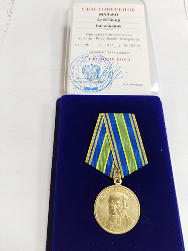 С радостью сообщаем, что наш автор Александр Васильевич Малько приказом Министерства юстиции Российской Федерации награжден медалью Анатолия Кони.